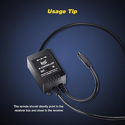 - Wireless Remote Control: You can use the wireless remote to change the color and adjust the brightness as you wish. Please note: 1. The remote control should point directly to the black receiver box and there is no obstacle between them. 2. The remote should be put near to the receiver box, not too far.