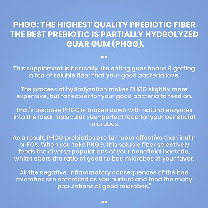 • Partially Hydrolyzed Guar Gum is a simple soluble fiber formula that is fertilizer for your good bacteria.