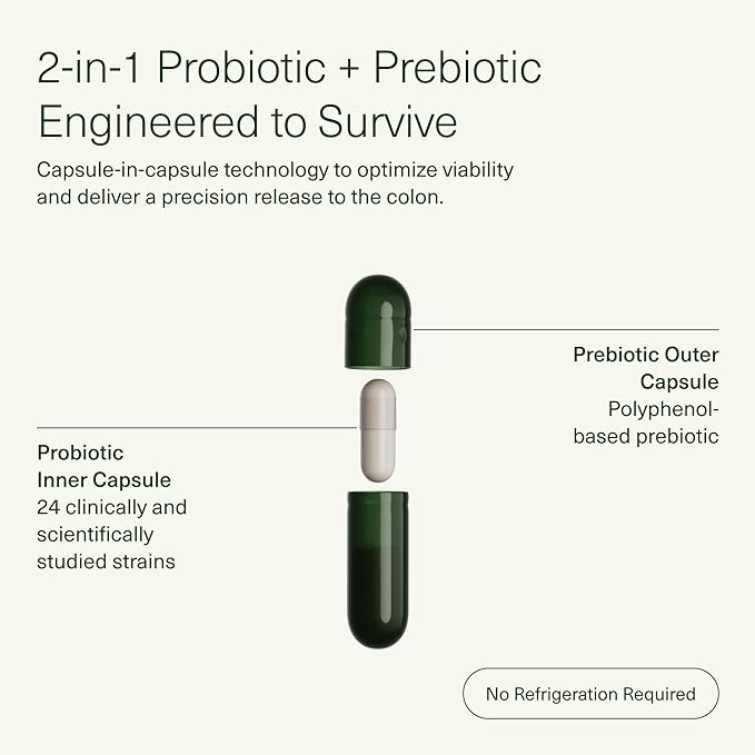 • 2-in-1 Probiotic + Prebiotic: Seed’s DS-01 Daily Synbiotic is a probiotic + prebiotic supplement formulated with 24 clinically and scientifically validated probiotic strains for whole-body benefits. 60 capsules. 30-day supply.