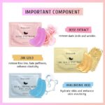 - Independent Packaging: This product contains 10 pairs of rose eye mask, 10 pairs of hyaluronic acid eye mask, and 10 pairs of 24K gold eye mask. 24K Gold Eye Mask helps rejuvenate the eye-contour skin, such as fine line and puffiness. Hyaluronic Acid Eye Mask helps hydrate skin and fade wrinkle. Rose Eye Mask helpsto remove dark circle.Each pair of eye mask is independent packaging to ensure that it will not be contaminated.